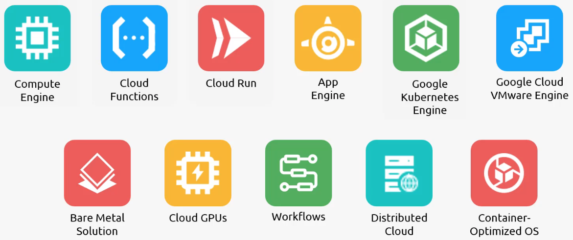 - Compute Engine: VM Instances, Instance templates, Machine images.