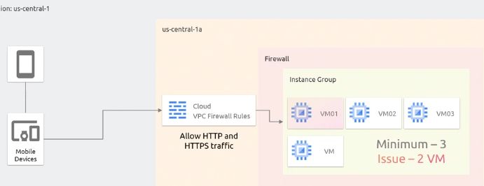 - Managed Instance Group (MIGs): It let you operate apps on multiple idetical VMs (Auto scaling, auto healing, auto updating).
