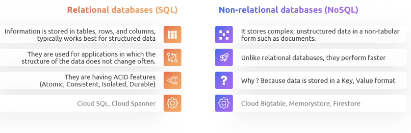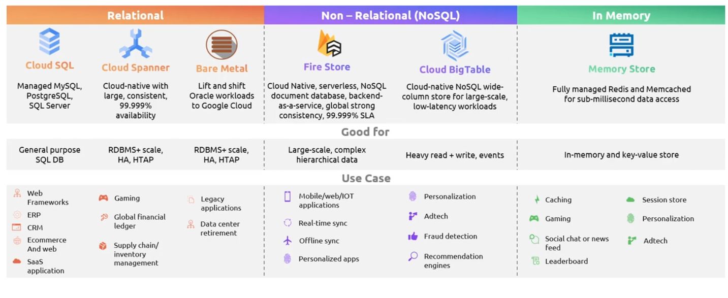 - Cloud SQL: MySQL, PostgreSQL, SQL Server