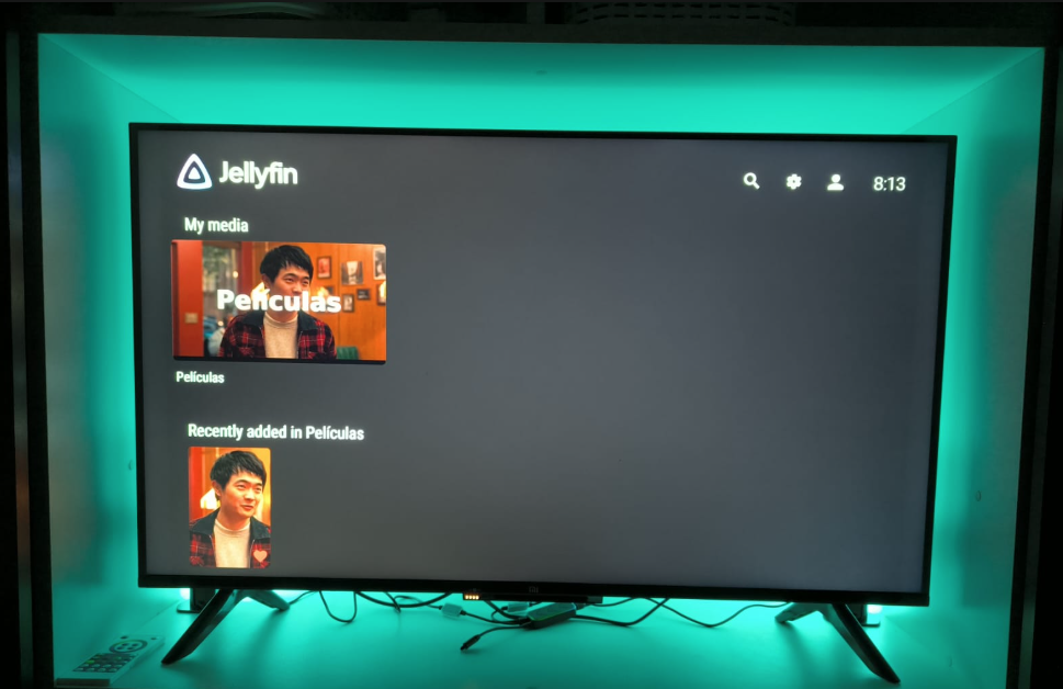 Luego de pasar por varios pasos de configuración inicial, podremos ver la interface de selección de mis películas y series que estén en la ruta /mnt/external/PELICULAS